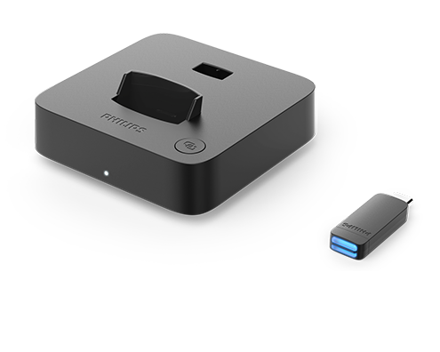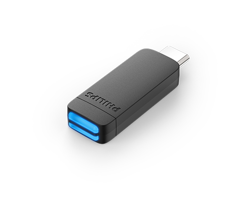Adaptador inalámbrico (dongle) para conectar el micrófono ambiental Philips SpeechMike Ambient ideal para grabaciones ambientales y conversación médico-paciente, con el ordenador. Se puede usar conectándolo directamente en la base ACC5000 o directamente por el puerto USB-C de su ordenador para una conexión inmediata.